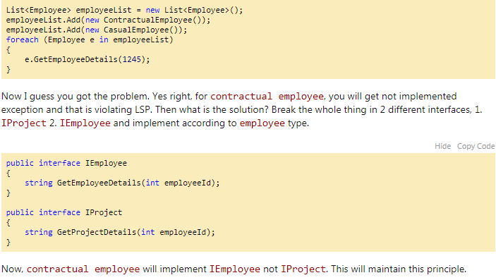 Up to this is fine right? Now, check the below code and it will violate the LSP principle.